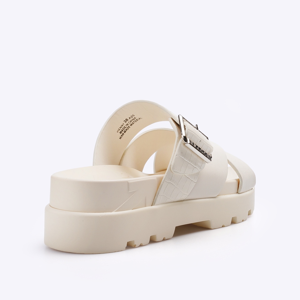 VIENNY, the perfect footwear to elevate simplicity. A contemporary blend of soft tones, VIENNY can be your go-to for effortless chic. Its crossover straps and elegant buckle detail add a hint of sophistication, perfect for sunny strolls or casual brunch dates.